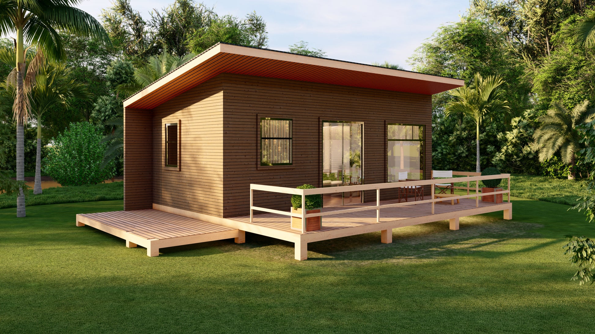 - 20' x 30' Wood Cabin Building Plans – Spacious Layout, Porch, Bedroom, Kitchen, Bathroom