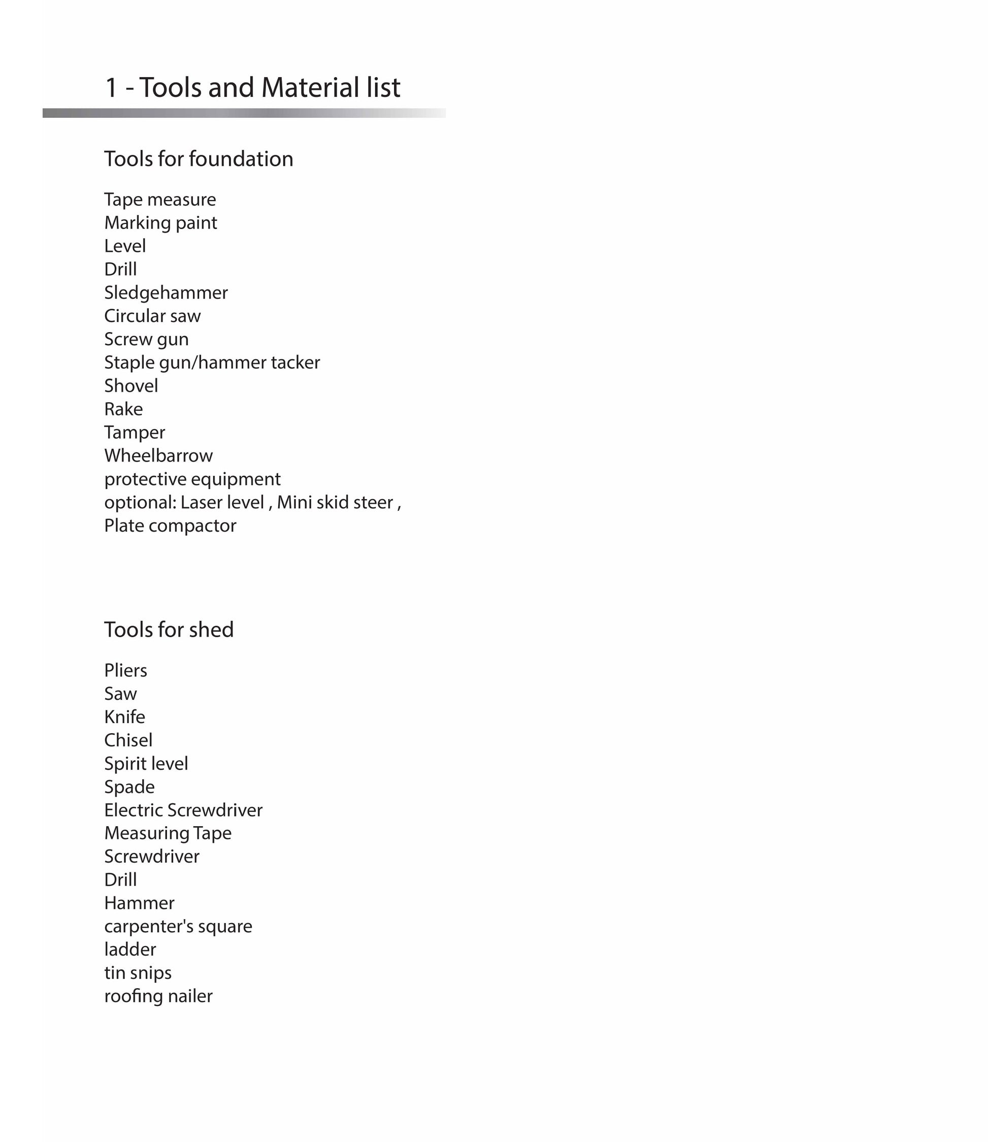 - Includes: Tools and materials list