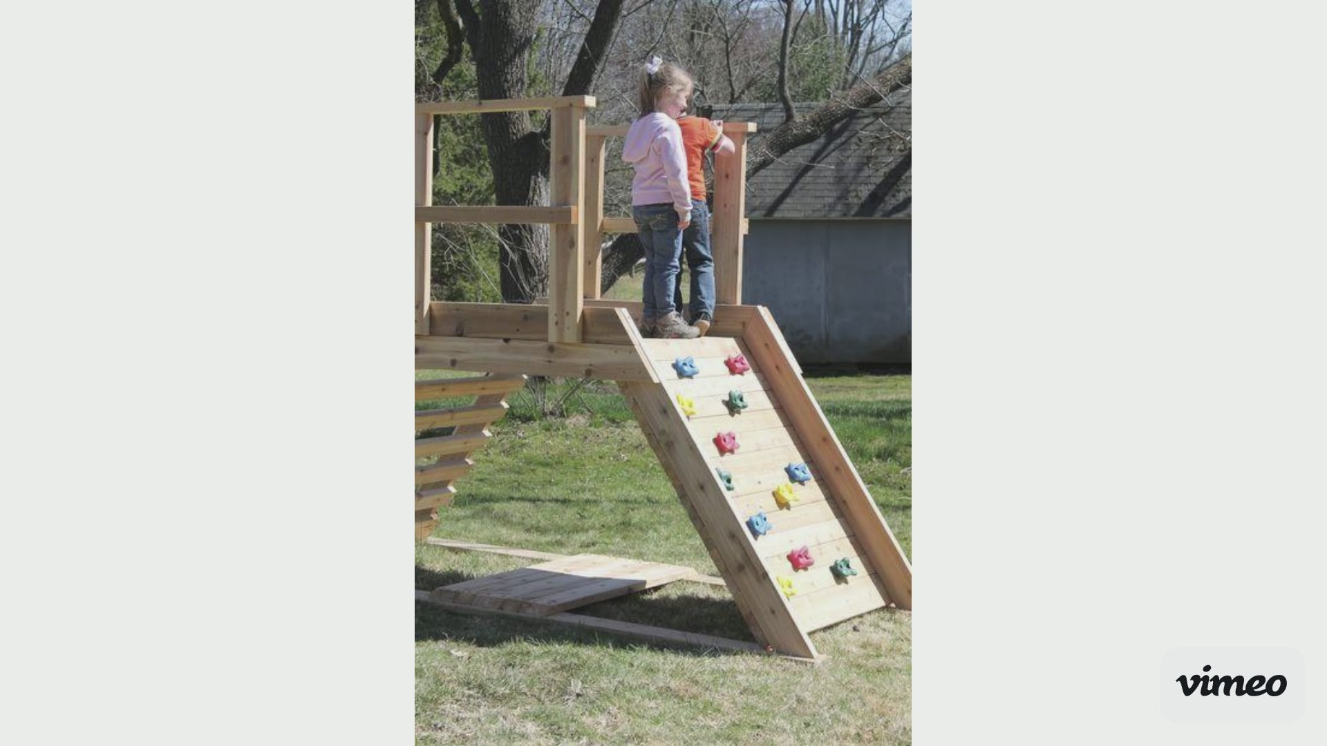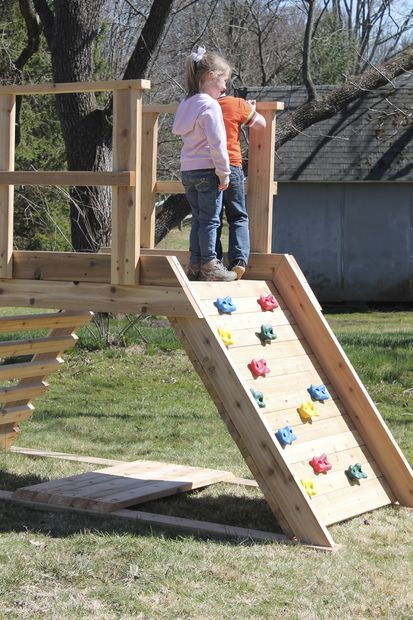 DIY Outdoor Wooden Child's Playset Building Plans | Climbing Wall & Ladder