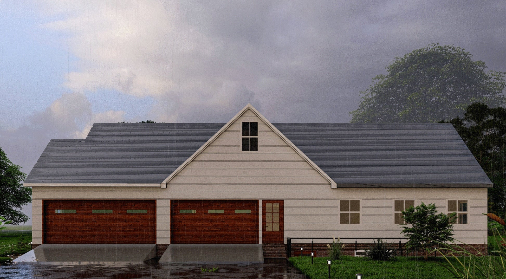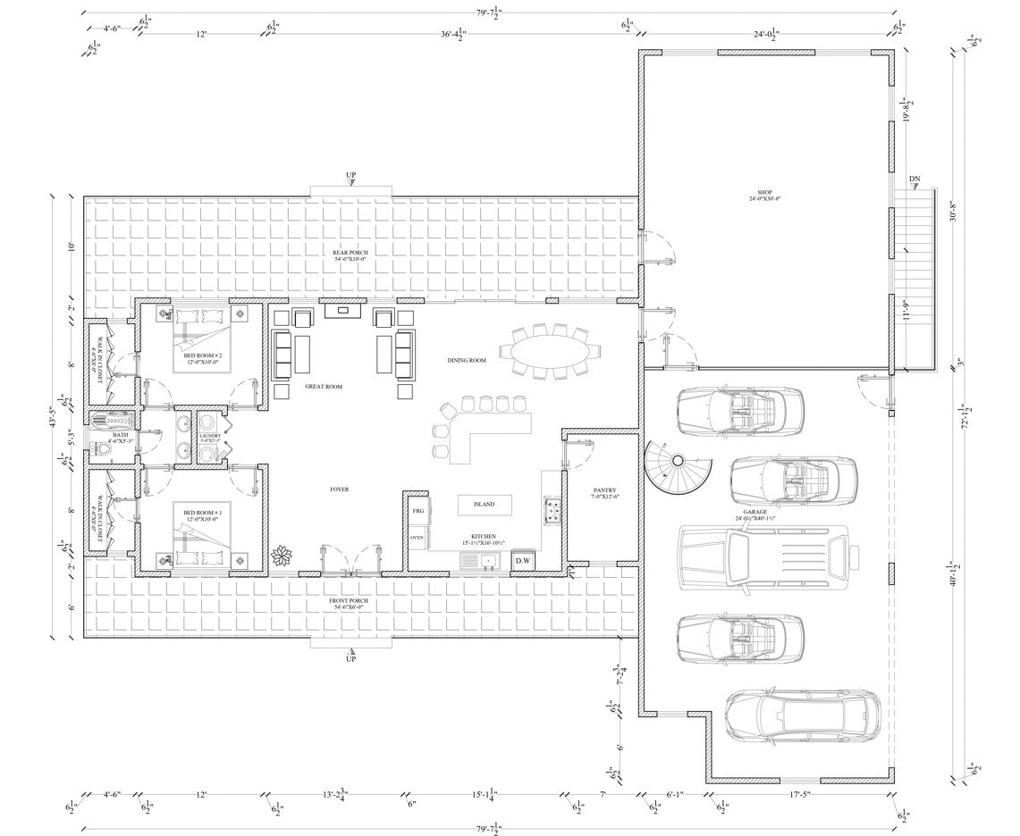 Discover the perfect blend of comfort and functionality with our plans for a 2-bedroom home. This versatile design includes a spacious 5-car garage and a dedicated workshop area, ideal for enthusiasts and professionals alike. The layout features two cozy bedrooms, a well-appointed washroom, a functional kitchen and dining area, and a welcoming living space. Above the garage, you'll find a versatile attic room, and the open basement provides additional possibilities. The plans include comprehensive Floor plans, elevations, electrical and plumbing details, and HVAC plans. Plan your dream home with ease!